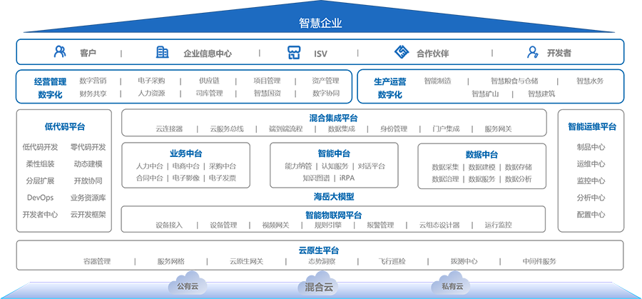 平台满足高级别安全要求,坚持开源开放战略,助力企业打通上下游业务系统,构造企业生态,实现互联互通。