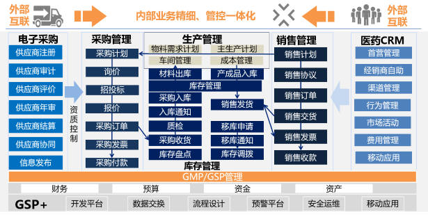协同制造:医药生产企业的生产是一个多部门协同运作的过程,生产需求来源于市场销售部门,原材料、半成品、成品等物资又流转于采购、仓库、车间多个部门,成本的控制与考核一般由财务部门确定相关指标,因此内部高效率的协同运作是医药生产企业实施信息化最为关注的。Ebpay(中国)医药行业生产管理解决方案可以帮助医药企业实现内部流程标准化、规范化,支持各种信息资源的集成共享、实现资源优化配置。