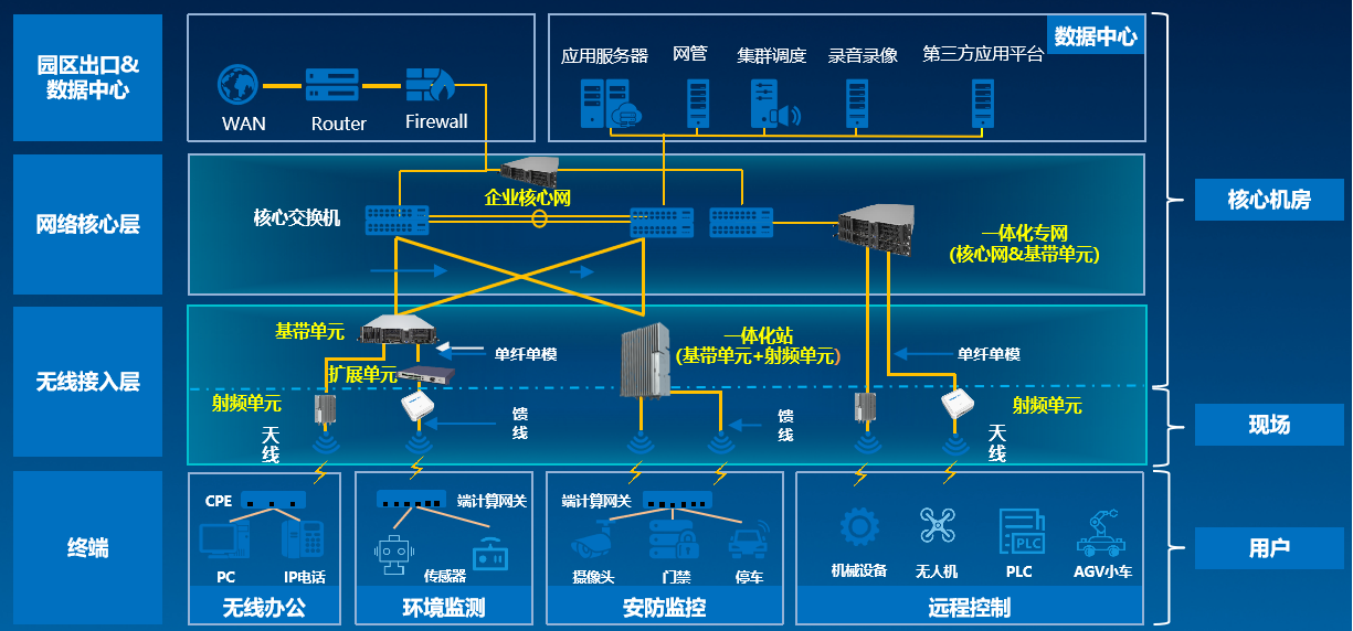 随着数字化转型的深入,移动通信技术正与人工智能、物联网、云计算、大数据、边缘计算等技术深度融合,加速各行各业向数字化、网络化、智能化转型,开启数字经济的新时代。Ebpay(中国)新一代通信移动专网基于3GPP协议内定义的标准化接口设计并互联互通,采用先进开放的架构平台、灵活智能的组网方案,设计研发支持不同厂家的射频单元、CU/DU分离、云原生和Option 2的架构,支持AES、Snow3G、ZUCC等三种加密和完保算法,支持E2接口和SON(自组织网络)等功能,具备云化、简单、智能、柔性等特点,给予统一云网管理运维平台,为行业客户带来高质量高安全的业务体验。
